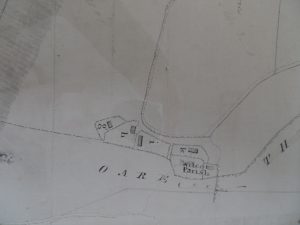 Map of the main farm buildings by the Church with village and annotated changes noted at the bottom. Cottages and barns were removed and relocated, some on the hill. At this point there was the Pound by the pond for stray animals, or criminals. The Poor house for the village at this time was located in the field opposite the Rectory near to the wooded hollow. Barn Cottage did not exist nor did the thatched row. The smithy and carpenters yards were where Barn Cottage now sits. The Farmhouse at this time was the old thatched version set further back from the Church. This farmhouse did not burn down as some reports intimate. It was in fact demolished following a survey that reported it was no longer fit to live in and rebuilt with the permission of the Trustees in 1864. Timber from Gopher Wood was sold to pay for the new House.