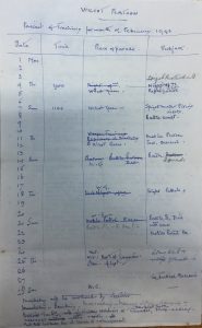 Here is the training schedule for the Wilcot platoon for February 1943: